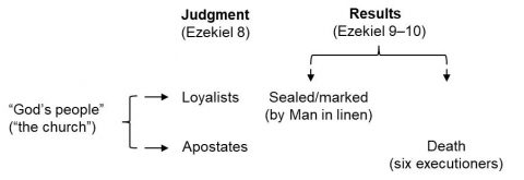 “God showed His mercy by separating a repentant, spiritual remnant from an apostate Israel. Those identified by the angel’s token found protection from the ‘outpouring’ of divine wrath. God commanded, ‘Do not touch anyone who has the mark.’ Begin at my sanctuary’ (Ezek. 9:6). The justice of God was executed upon the impenitent only after the angel of mercy had completed his sealing work (see Ezek. 9:10; also Ezek. 8). In both Exodus 12 and Ezekiel 9 we notice the same sequence: first the sealing, then follows the covenant curse on those who did not receive the mark of protection.”[12]